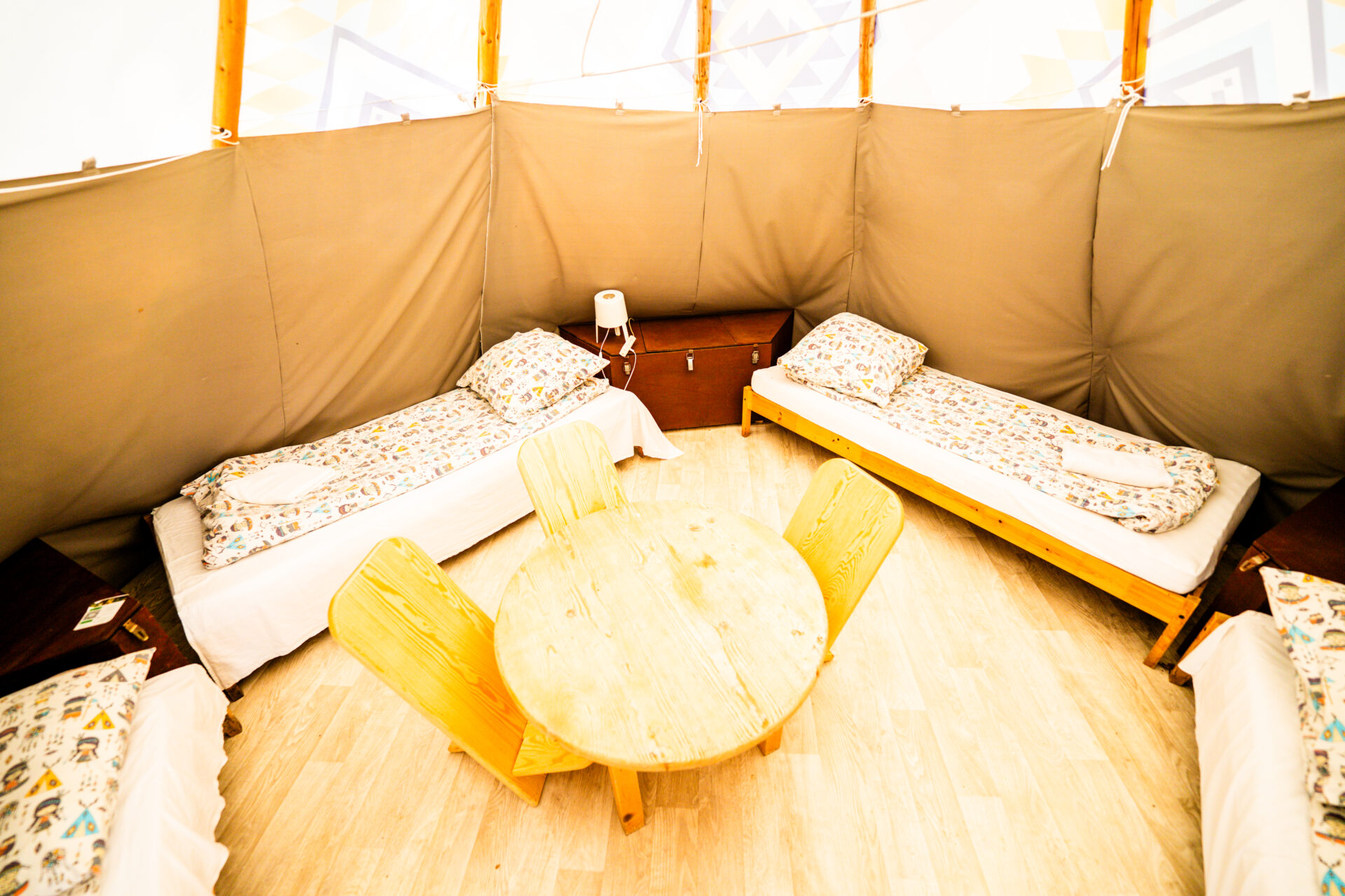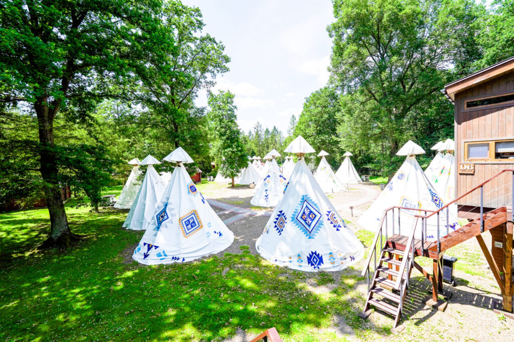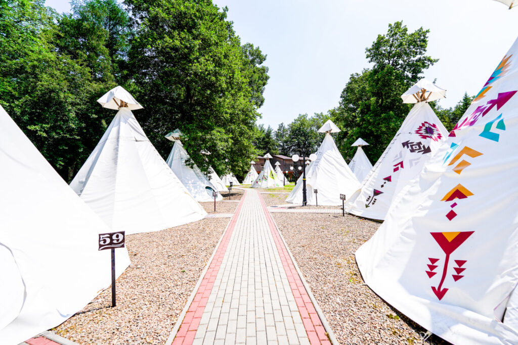 Howgh, Blade Twarze! Witajcie w naszej wiosce indiańskiej – miejscu, gdzie możecie poczuć się jak postaci rodem z westernów i powieści przygodowych. Przejdźcie pod rzeźbioną bramą, pokłońcie się magicznemu totemowi i zamieszkajcie w jednym z kolorowych namiotów. Nocleg w indiańskim tipi to pomysł na super przygodę z elementami survivalu dla dużych i małych. Znakomicie sprawdza się m.in. podczas wycieczek szkolnych, kolonii lub jako niezapomniany prezent dla dziecka.